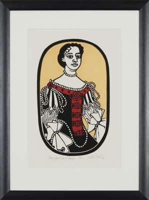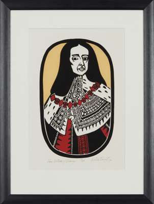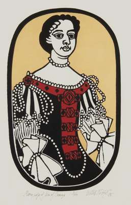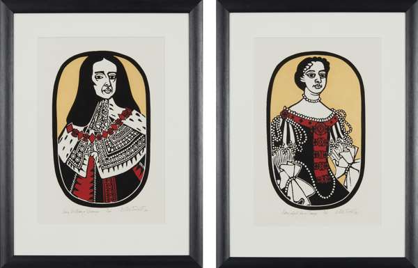Note: Scottish printmaker Willie Rodger designed the award-winning Scottish Historical Playing Cards in 1974 for Angus Ogilvy of the Stirling Gallery. The original designs were cut in lino, his favoured printmaking medium, before bring printed as screenprints in an edition of 100 in 1975. The full set comprises 12 portraits depicting important figures in Scottish history, with two jokers: John Knox and Adam Smith.