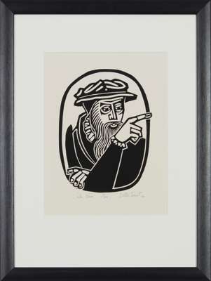 Note: Scottish printmaker Willie Rodger designed the award-winning Scottish Historical Playing Cards in 1974 for Angus Ogilvy of the Stirling Gallery. The original designs were cut in lino, his favoured printmaking medium, before bring printed as screenprints in an edition of 100 in 1975. The full set comprises 12 portraits depicting important figures in Scottish history, with two jokers: John Knox and Adam Smith.