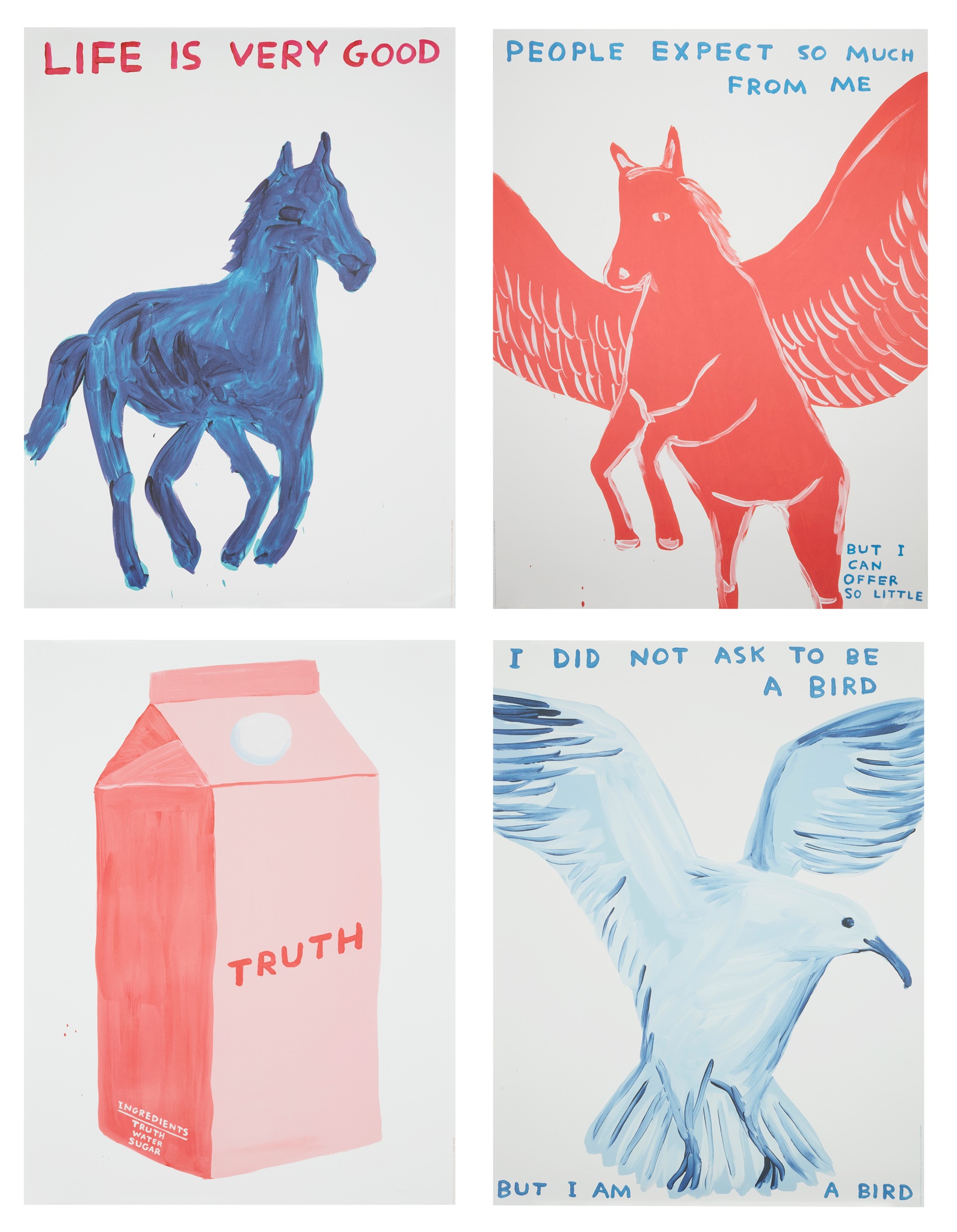 FOUR POSTERS (PEOPLE EXPECT SO MUCH FROM ME, LIFE IS VERY GOOD, I DID NOT ASK TO BE A BIRD, TRUTH) - 2016-2021