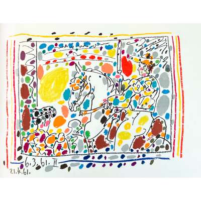 Oblong 4to, complete with four Picasso lithographs, one in colour, original pictorial cloth boards, with original slipcase, printed by Mourlot, Paris, published by Andre Sauret, Monte Carlo