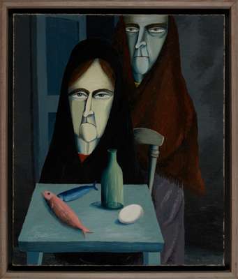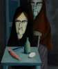 TWO WOMEN WITH FISH, EGG AND BOTTLE, C.1946