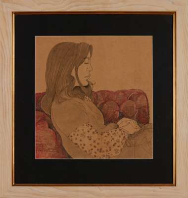 Inscribed 'Marlene Kitts drawn in London c.1970 by Alasdair Gray' lower left, ink, wash and felt tip on buff paper