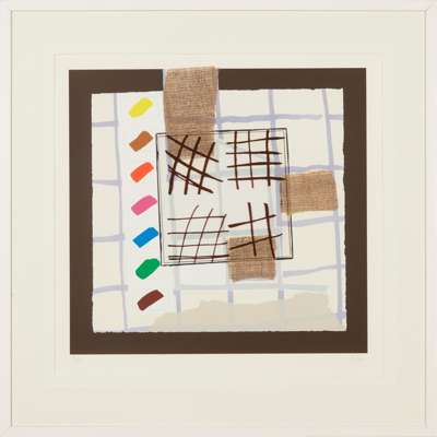Screenprint with collaged elements, 43/130, signed and numbered in pencil to margin