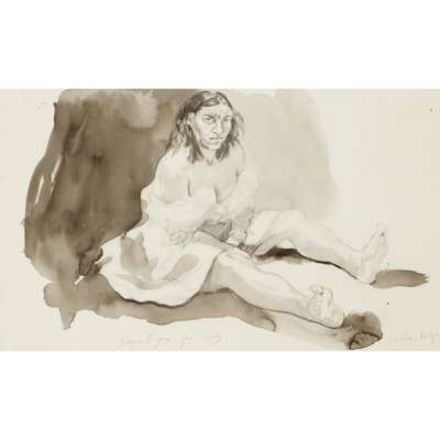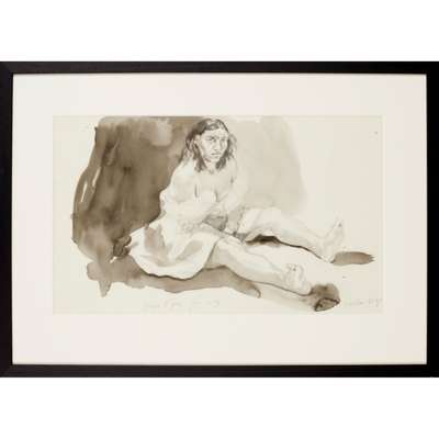 Note: This work is believed to have been produced by Rego while at the Curwen Studio working on the Jane Eyre series of lithographs. This work acts as a study for 'Bertha' (Rosenthal 214), and appears to have been inscribed to the Studio.