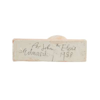 Signed, dated and inscribed 'For John & Elsie' to base, cast plaster with red wash