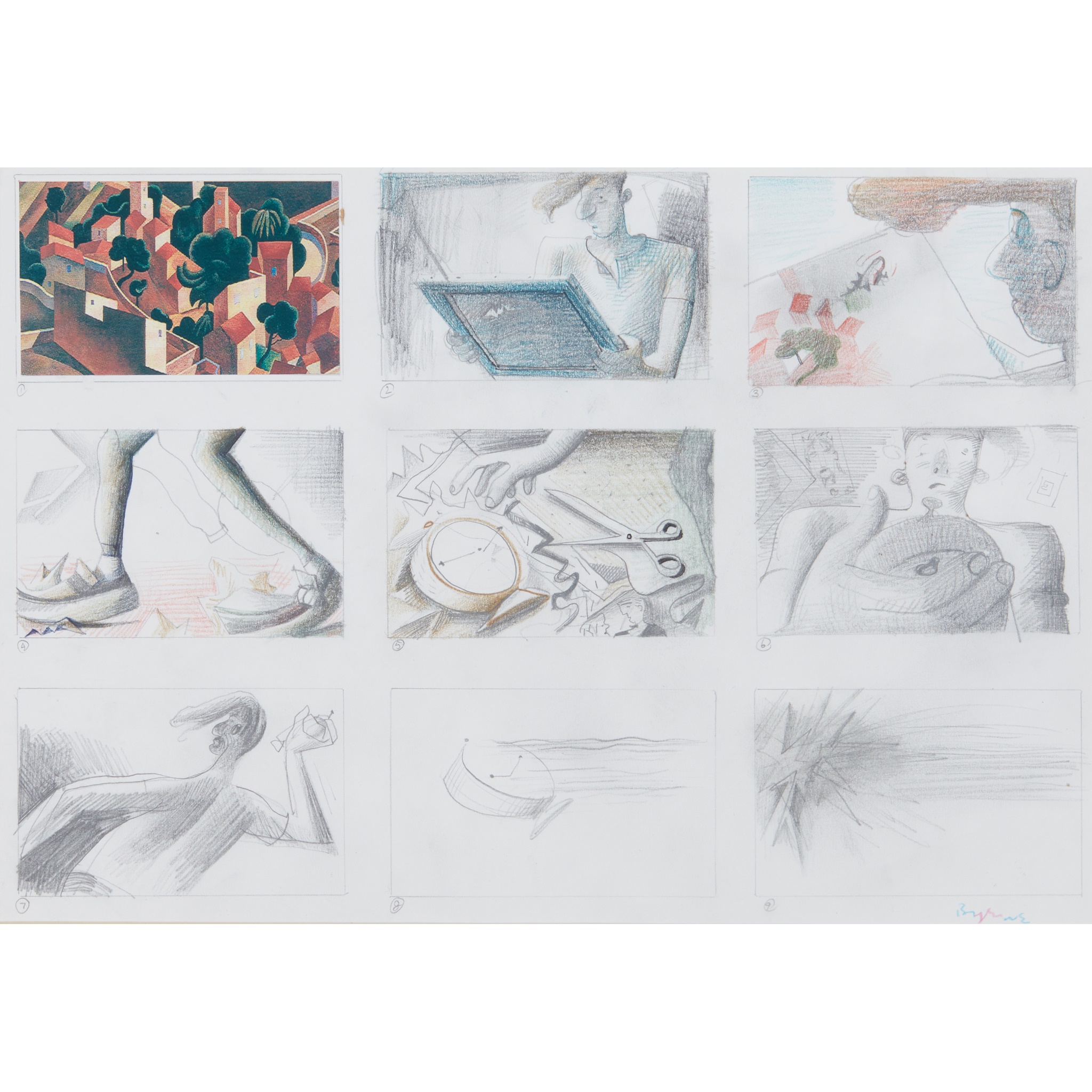 Signed lower right, pencil and coloured pencil
