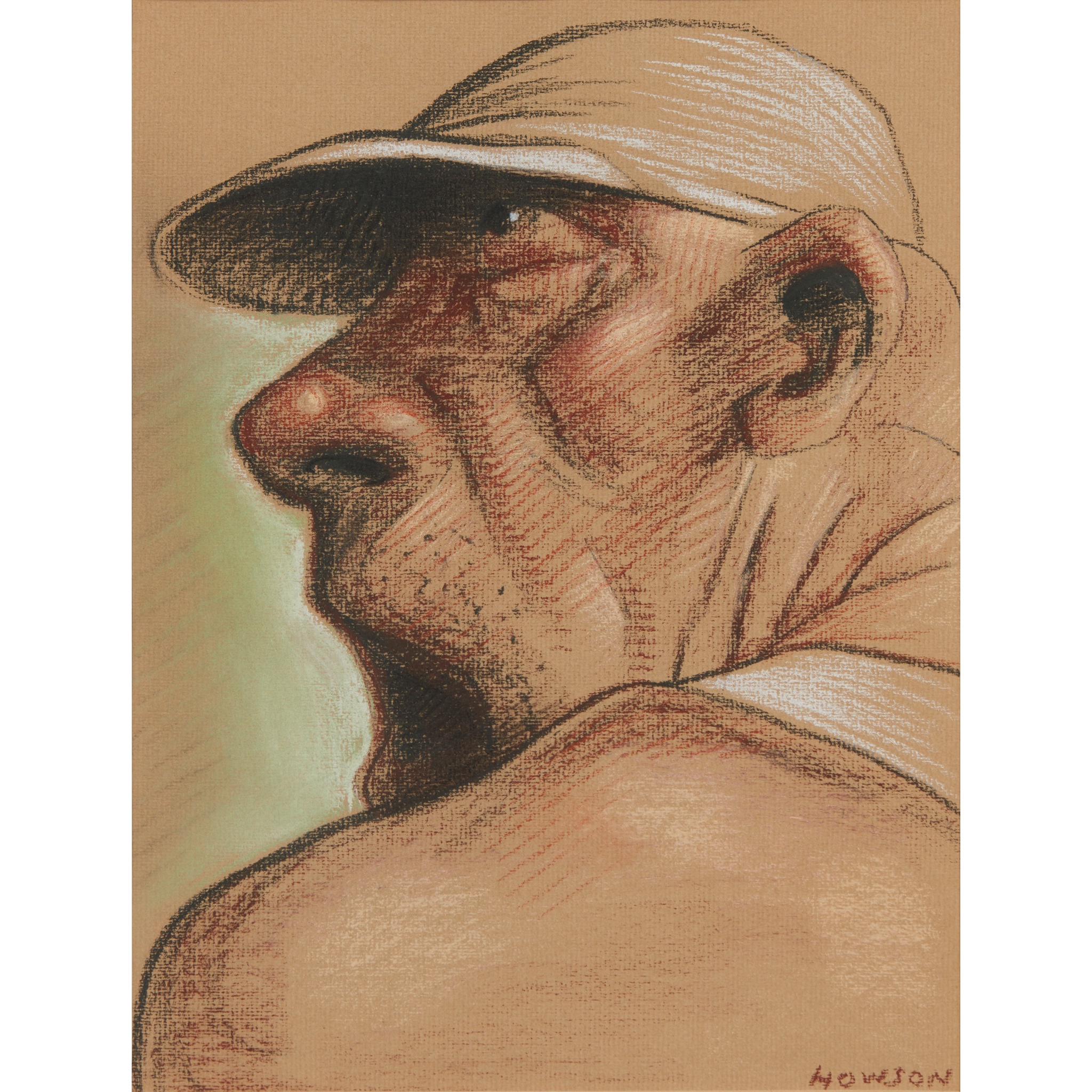 Signed lower right, pastel on brown paper
