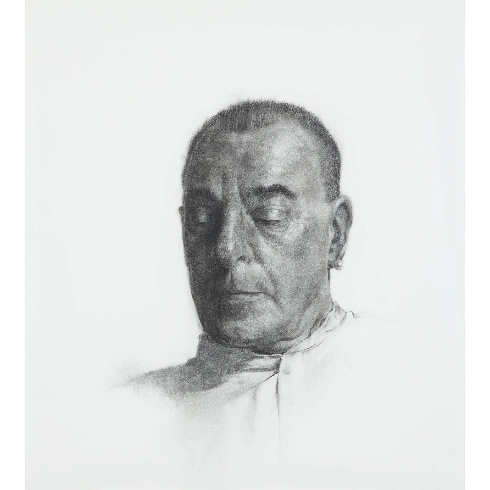 Signed and titled to backboard, charcoal on paper