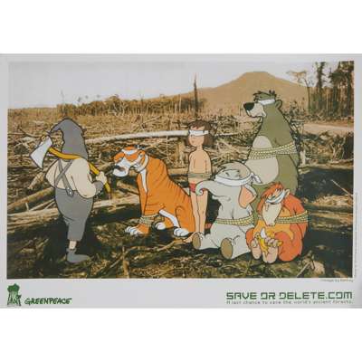 Off-set lithograph on recycled paper, originally commissioned by Greenpeace, and the accompanying sheet of stickers