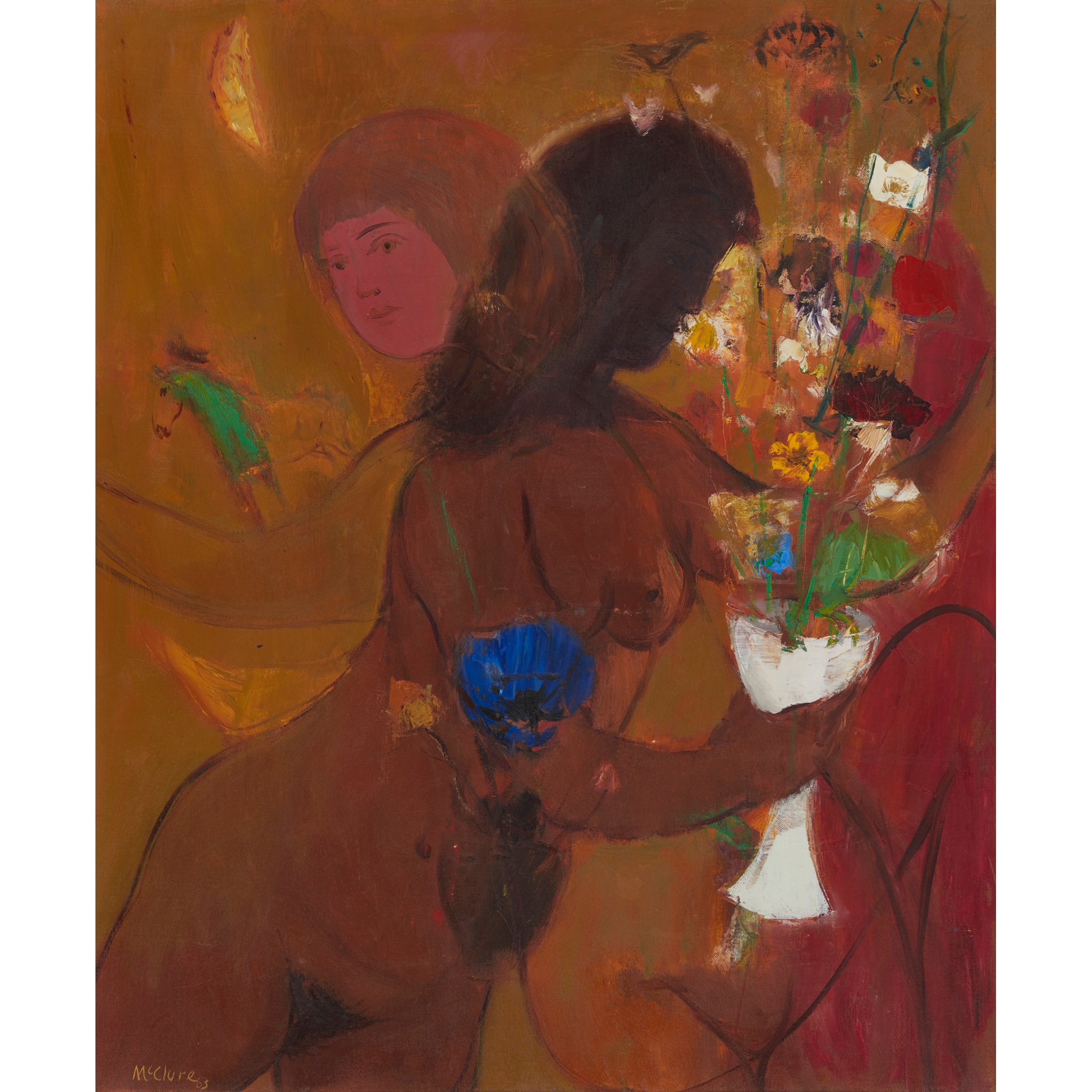 Born in Lochwinnoch to a family of furniture designers, McClure initially undertook studies at the University of Glasgow in English & History, where he also developed a keen interest in philosophy. His studies were interrupted by war service, during which he was conscripted into the coal mines as a ‘Bevin Boy.’ Throughout the War he painted and drew prolifically, which appears to have consolidated his interest in the visual arts, and in 1947 he enrolled at Edinburgh College of Art. It was here that he established many important connections in the Scottish arts scene, not only in his contemporaries including James Cumming, William Baillie, John Houston, Elizabeth Blackadder and David Michie, but also through exposure to the influence of major figures such as Anne Redpath, William Gillies, John Maxwell, William MacTaggart and Robert Henderson Blyth. McClure’s work aligns with this wider twentieth-century Scottish painting tradition characterised by a strong use of colour and confident handling of paint.