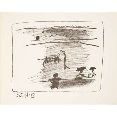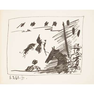 Oblong 4to, complete with four Picasso lithographs, one in colour, original pictorial cloth boards, with original slipcase, printed by Mourlot, Paris, published by Andre Sauret, Monte Carlo