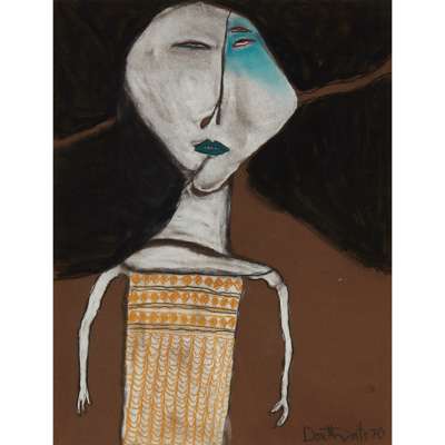 Signed and dated '70 lower right, pastel on brown paper