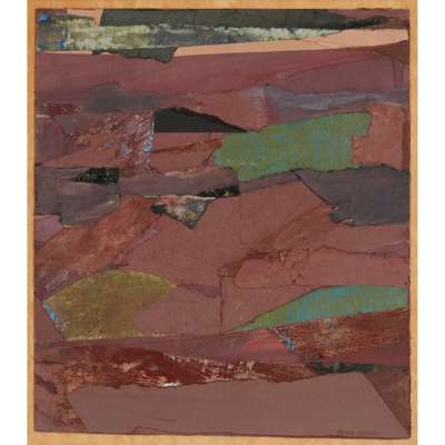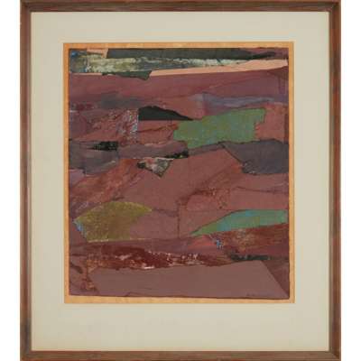 Signed lower right, collage on board