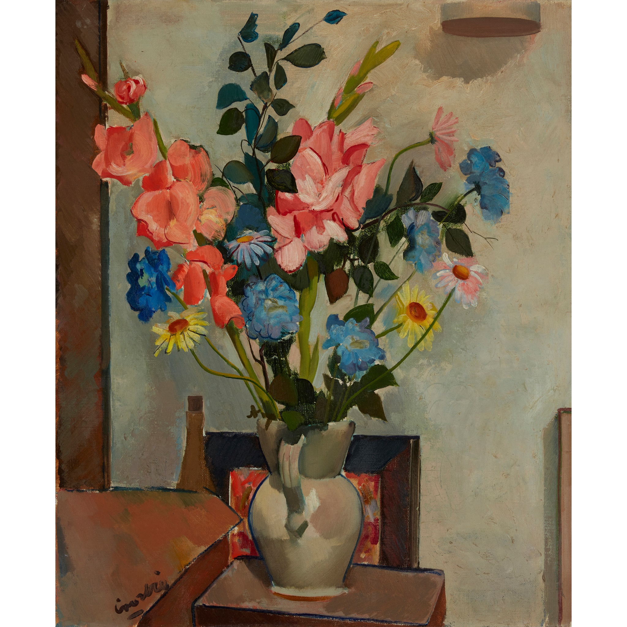 STILL LIFE WITH VASE ON A GREY GROUND