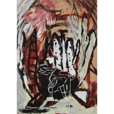 Signed and dated ’84 verso, inscribed with title verso, gouache on brown paper