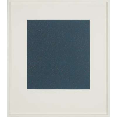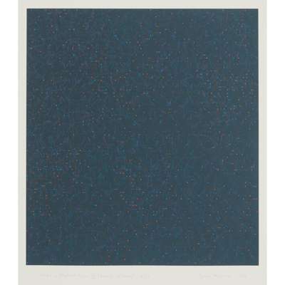 Hugonin brings a rigorous formal approach to this series, as with all of his work. Each image has three formal elements: a ground and two respective groups of dots and linear ellipses, the arrangement and placement of which is determined through a complex numerical system centred around prime numbers. Hugonin describes his artistic intentions with this suite as ‘a series of observations into colour behaviour through the application of elliptical form. Rather than providing any finite conclusion or definitive answers these prints instead open up a series of meditative spaces for the direct experience of colour and its interactions.’