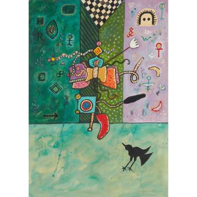 Signed and inscribed with title lower right, gouache and watercolour