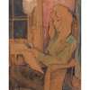 Carole Gibbons was born in Glasgow in 1935, and continues her art practice from her studio there to this day. A student of the Glasgow School of Art and member of The Young Glasgow Group collective, Gibbons was the first living female artist to be exhibited at Glasgow's Third Eye Centre. Despite a long and critically well-regarded career, with works featured in many institutional collections around the UK, Gibbons' work is only now really achieving the recognition it deserves. She was recently included in Tate's critically acclaimed exhibition Women in Revolt! Art and Activism in the UK 1970-1990. In 2023 her solo show at Celine, Glasgow was rated in Frieze Magazine's top ten shows of 2023. She has exhibited in New York and London in recent years, having recently been taken on by Hales Gallery, London, who are exposing her work to a new generation of collectors. As Hales note in their artist's biography, she has long been championed by artists Lucy Stein, Andrew Cranston, poet JF Hendry, art historian Susannah Thompson and her friend, the writer and artist Alasdair Gray. Here we see Gray sketching her portrait as a young woman and artist - her hands full of the tools of her craft, her eye considering the subject of her drawing, lost in concentration.