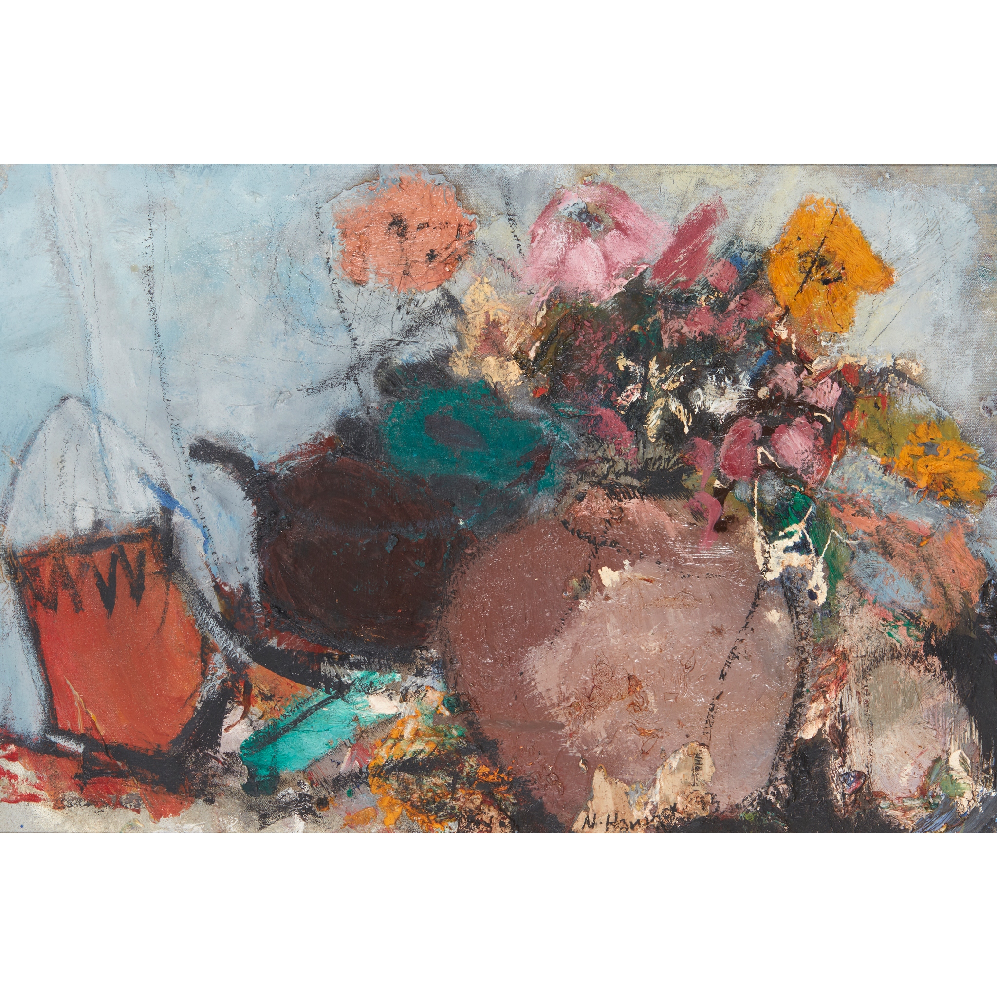 Signed lower right, oil on canvas laid on board