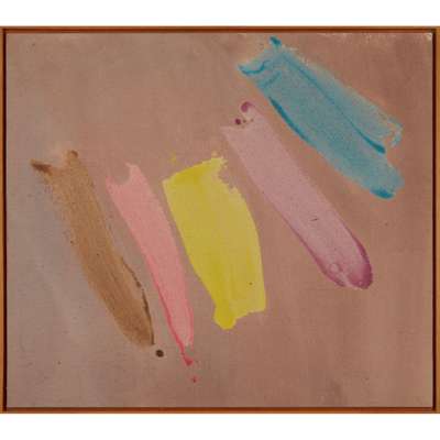 McLean resided in London for much of his life, teaching at various art schools and painting all the while. His first solo exhibition was held in 1975 at Talbot Rice Gallery, Edinburgh, and in 1977 his work was included in the Four Abstract Painters exhibition at the Fruitmarket Gallery, where the influential critic Clement Greenberg made an opening address (Greenberg visited the McLeans in Arbroath where he encountered John’s father Talbert, whom Greenberg observed was a happier man than Mark Rothko or Jackson Pollock). A 1981 residency at the Emma Lake workshop in Saskatchewan, Canada proved particularly formative, with the work he produced subsequently inspired by the wide horizons and intensity of light. Numerous solo exhibitions of John McLean’s work have since been staged across Britain and America, and in 2017 the major retrospective Like Singing and Dancing: John McLean’s Abstract Paintings was held at the Guangdong Museum of Art in Guangzhou, China.