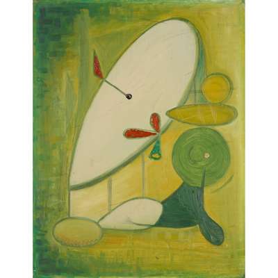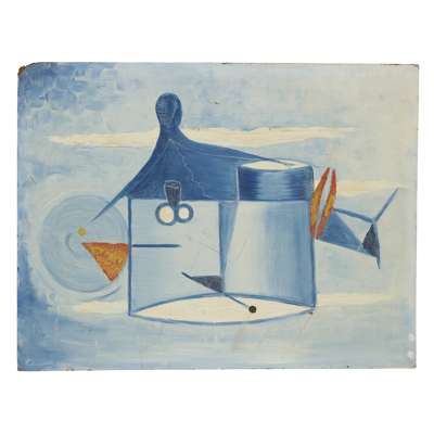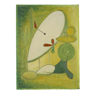 46cm x 60cm (18in x 23.5in), unframed, and a further oil on board of the same scale (portrait orientation) by the artist, ‘Green Abstract’, also dated 1965 (2)