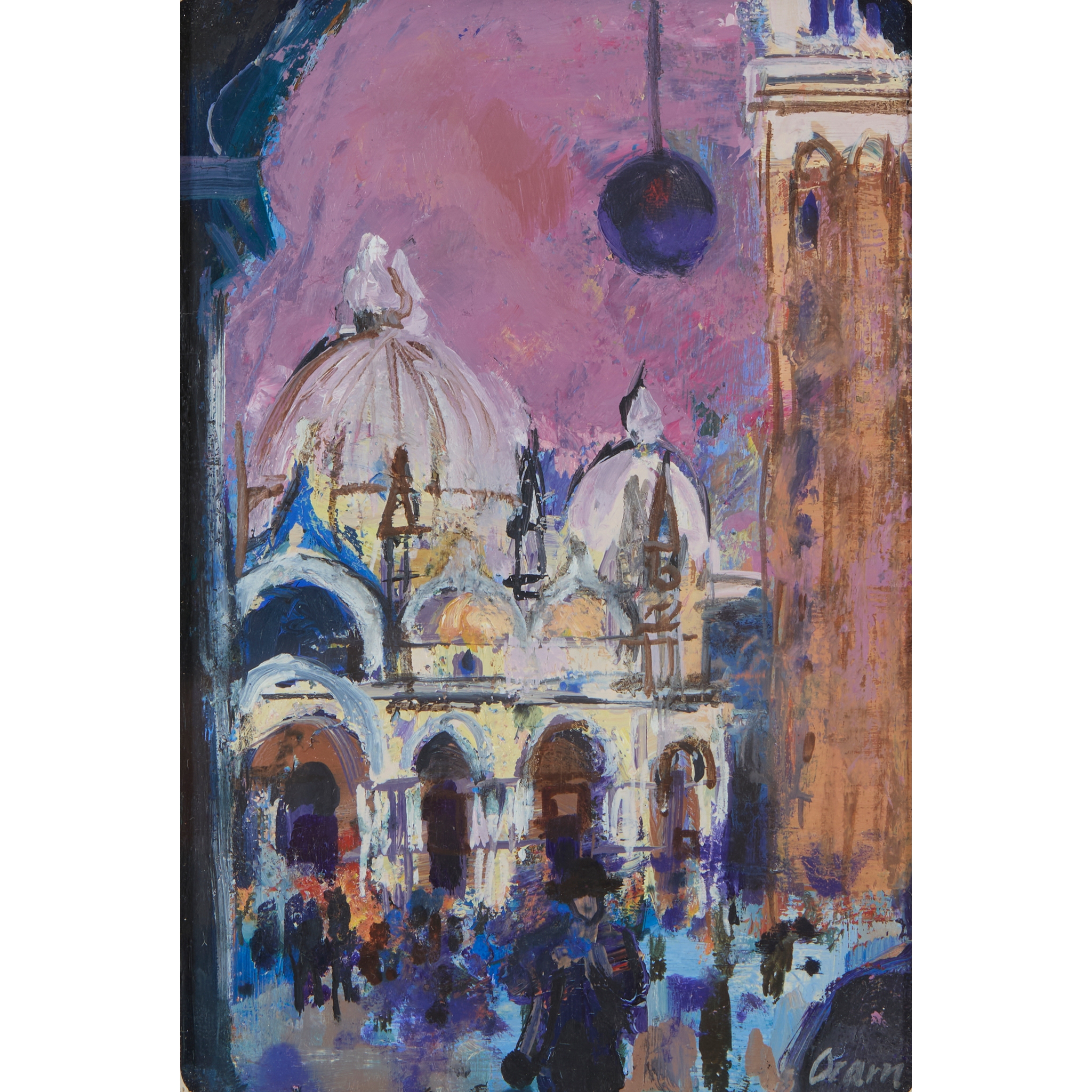 Signed lower right, oil on card