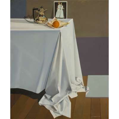 STILL LIFE: SILVER TEA POT ON A WHITE CLOTH, 1974