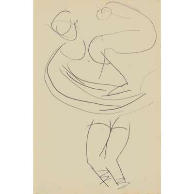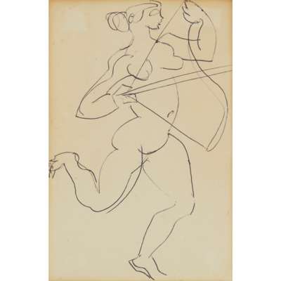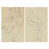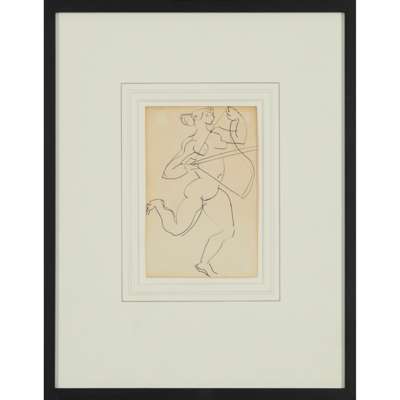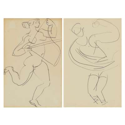 TWO DRAWINGS: NUDE ARCHER & BADMINTON PLAYER, C.1950
