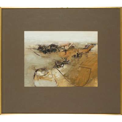 Signed and dated 1967 lower right, gouache and ink on paper