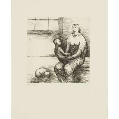 Etching, PL IX 32/65, signed in plate, signed and editioned in pencil to margin, printed by James Collyer and John Crossley, published by Raymond Spencer Company Ltd for The Henry Moore Foundation, Much Hadham