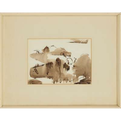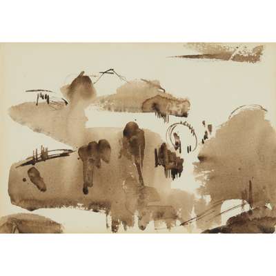 Faded inscription verso which has been transcribed on a label: ‘To Mr and Mrs Davies, with much appreciation and all good wishes, William Johnstone (the artist)’, ink and wash