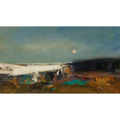 Signed lower left, inscribed with title verso, oil on board