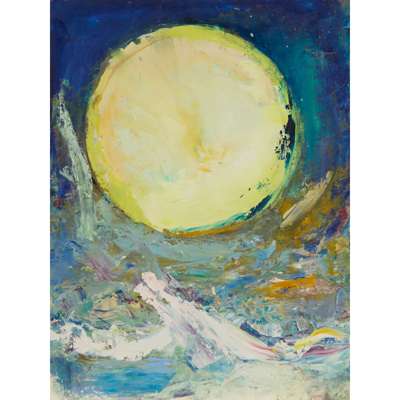 Neilson arrived in Catterline in the early 1960s on the invitation of Joan Eardley, who had recently established a studio in the remote village, and the pair became lovers and artistic companions. Neilson assimilated technical lessons from Eardley’s landscape style and responded to the dramatic and changeability of the sea and sky. Her Catterline paintings are characterised by frenetic expression and an atmosphere of brooding intensity.