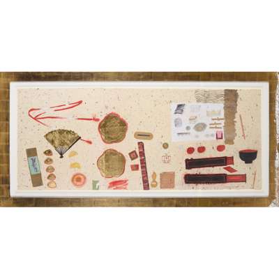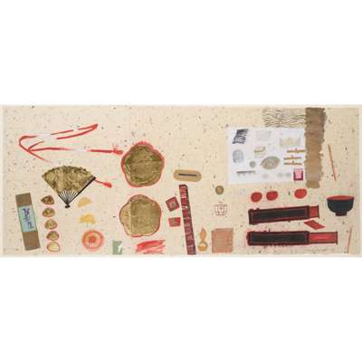 Signed and dated lower right, pencil, watercolour, gouache, gold leaf on two conjoined pieces of handmade paper