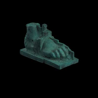 The sculpture is a small cast of the foot from the sculptural work known as the Manuscript of Monte Cassino. The large-scale piece consists of a hand and a foot, and was given to the city by Sir Tom Farmer in 1991 and is placed in central Edinburgh at Picardy Place.