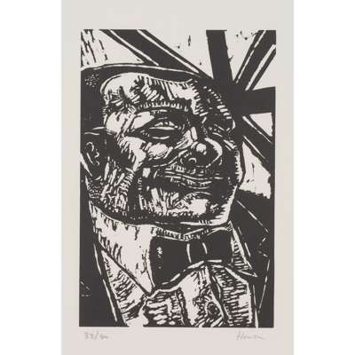 Linocut, 33/40, signed and numbered in pencil to margin, printed by Simon King, published by Charles Booth-Clibborn, under his imprint, The Paragon Press, London