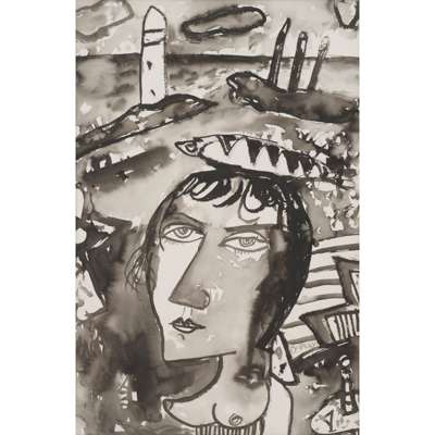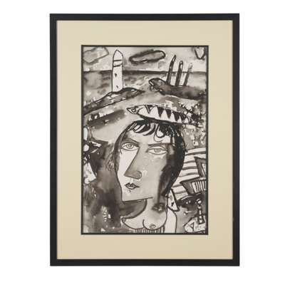 Signed lower right, ink wash on paper