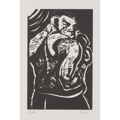 Linocut, 33/40, signed and numbered in pencil to margin, printed by Simon King, published by Charles Booth-Clibborn, under his imprint, The Paragon Press, London