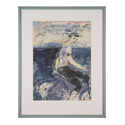 CYCLIST LOOKING OVER HIS SHOULDER (BLUE, SMALL RAINBOW) - 1987