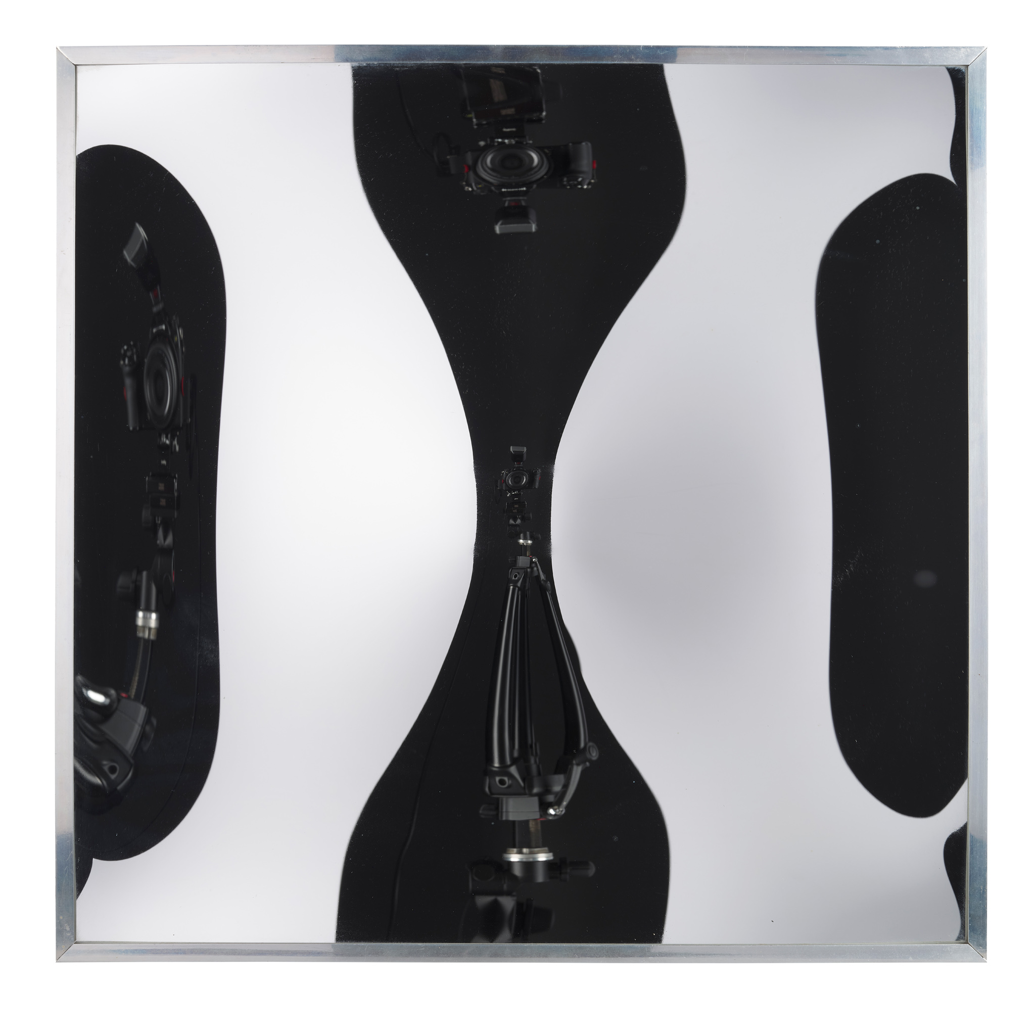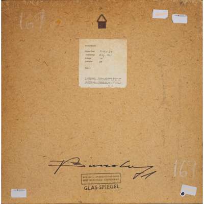 Signed and dated August 1970 verso, concave glass sheet, silver-plated in an original metal frame