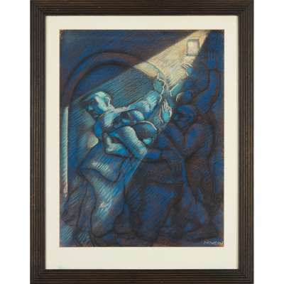 Signed lower right, bears title and date to label verso, pastel
