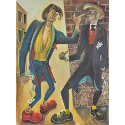 Signed lower right, mixed media on paper
