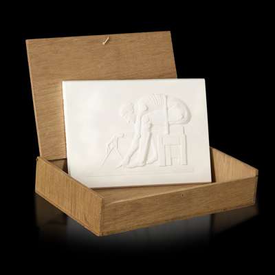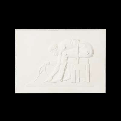 Plaster plaque, signed, dated and inscribed ‘Study for the British Library’ and ‘For Mark’ in pencil verso, housed in Artist's box