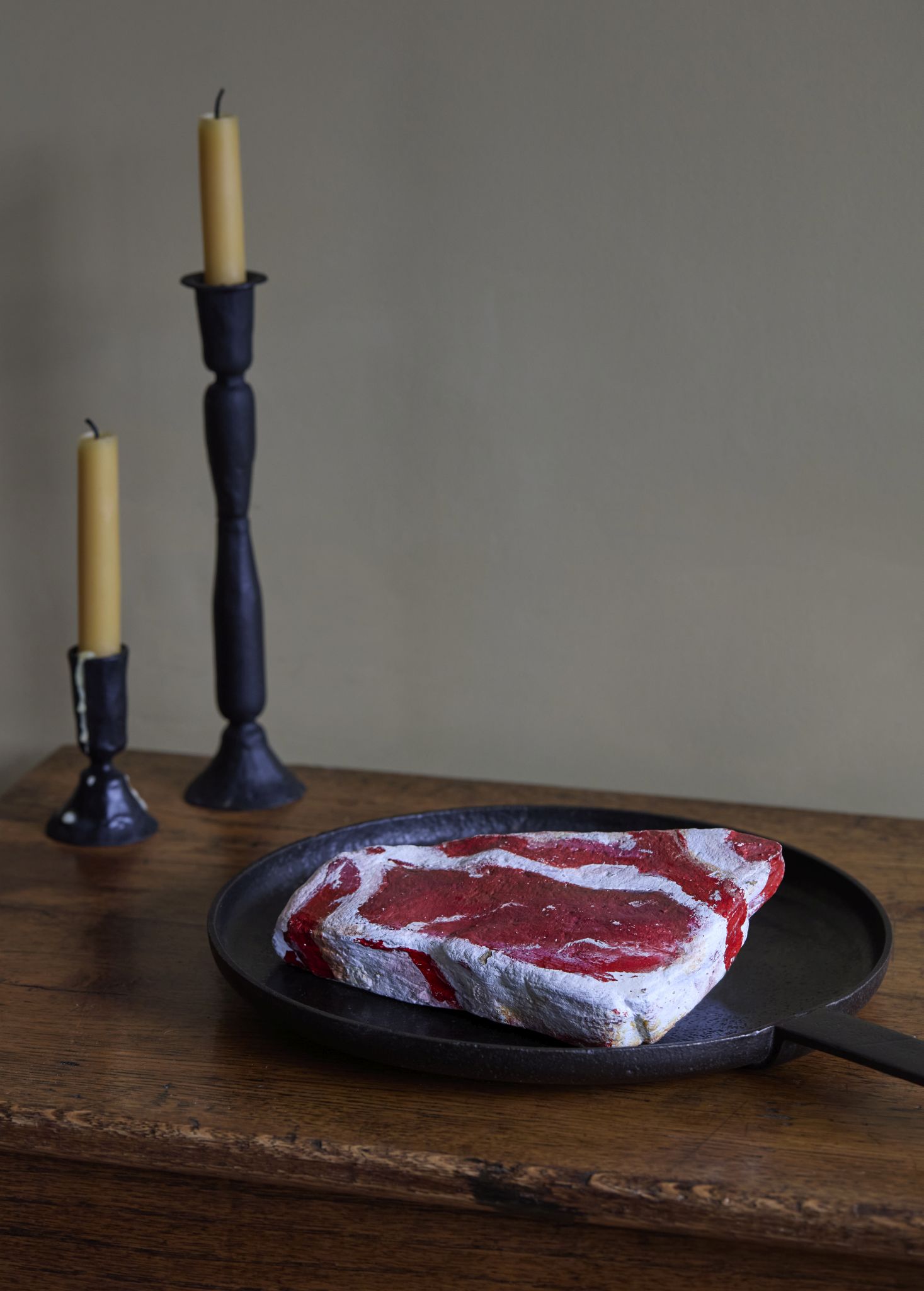 Nicholas Party's project for Haarfest Day Five for the Fence Collective included the creation of three over-sized chairs which acted as both artworks and the stage set for musical performances. Then, in collaboration with Clare McAllister, he curated a walk marked out by beach stones painted as slices of citrus fruit, apples and, as here, rare steaks, which directed walkers to the beach for a performance.