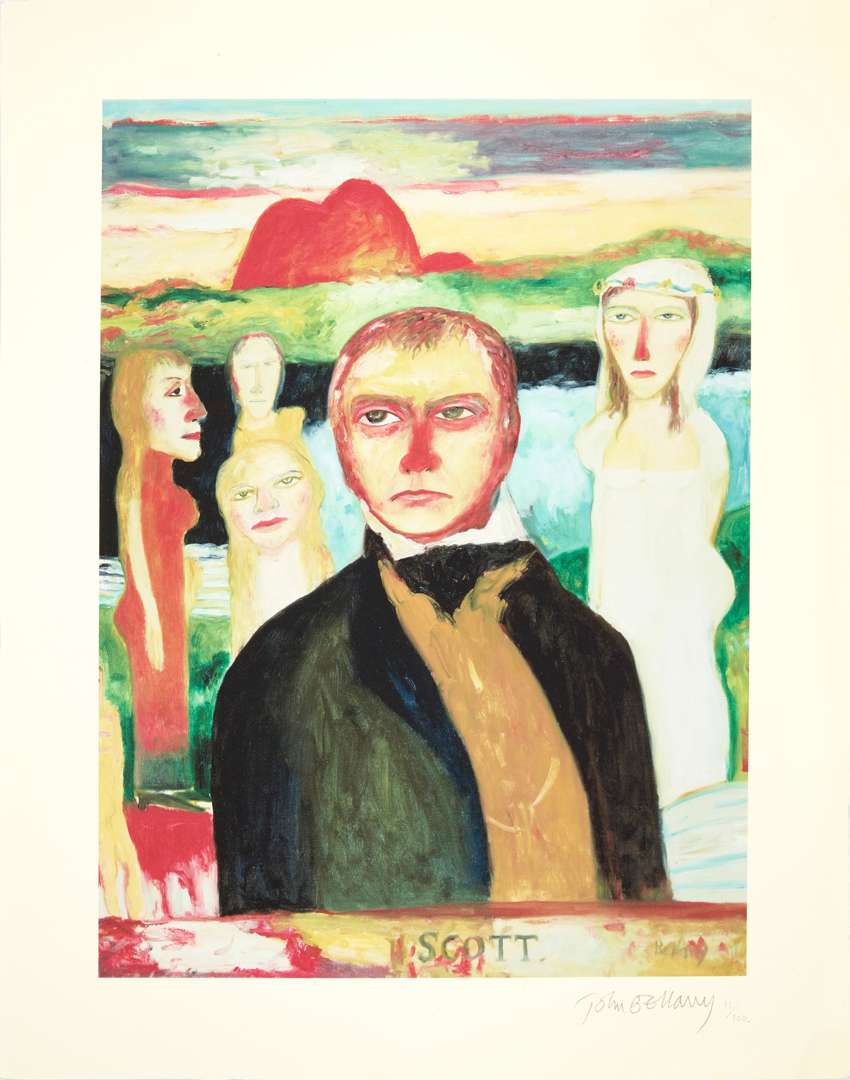 This print was one of a series commissioned by Canongate publishers to be used as book cover designs for their Pocket Classics series in 2001. This image by Bellany was the cover for ‘Two Stories’ by Sir Walter Scott.