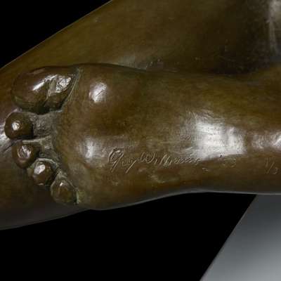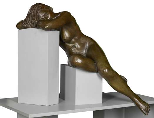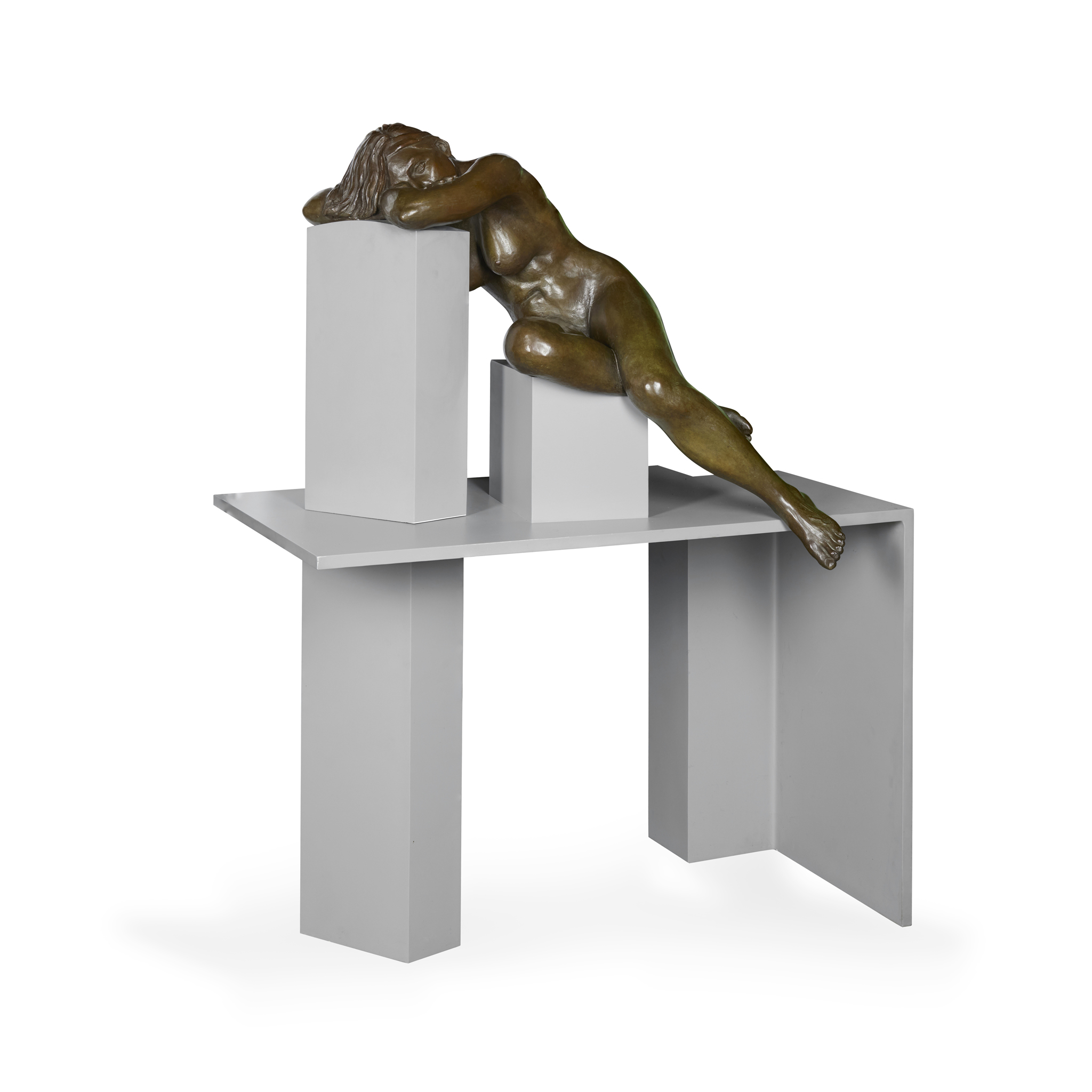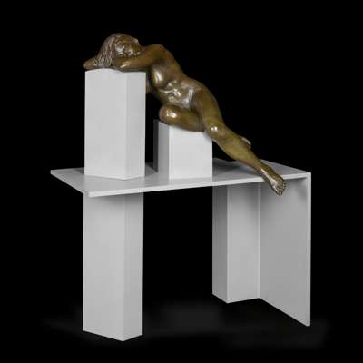 Bronze sculpture on metal table stand, 1/3, signed, dated and numbered to figure's foot