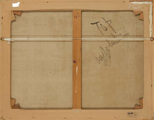 Christie's, Glasgow, ‘The Studio of the Late Dr. William Johnstone’, 12 April 1990, Lot 76, with the ink stamp to paper covering on frame.