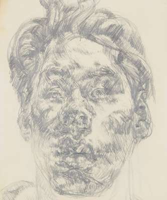Tai Shan Schierenberg and John Kirby attended art school in London at the same time in the 1980s and became friends. John was scouted by Angela Flowers at his degree show and was then represented by Flowers Gallery for the entirety of his career. Tai also went on to become one of the gallery artists at Flowers, who continue to represent him to this day. This intimate group of portraits were acquired directly from the artist’s studio by John over the course of their friendship.