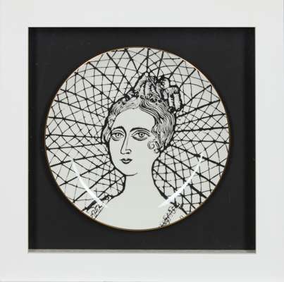 The set of 6 Bone China plates with lustre rim, each stamped with Wallace Collection and Grayson Perry marks verso, produced to accompany the exhibition Grayson Perry: Delusions of Grandeur at the Wallace Collection, London, 28 March - 26 October 2025 (6)