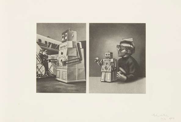 The incomplete portfolio of 7 photo-etchings, AP 9, from the edition of 75 plus 10 A.P.s, signed, dated ‘December 1975’ and inscribed ‘For Ray’ in ink to title page, each etching signed, dated and editioned in pencil to margin, with the Editions Alecto inkstamp verso, printed at the Alecto Studios, published by Editions Alecto, London, commissioned by British Olivetti, with title pages and list of plates, in original card presentation box;